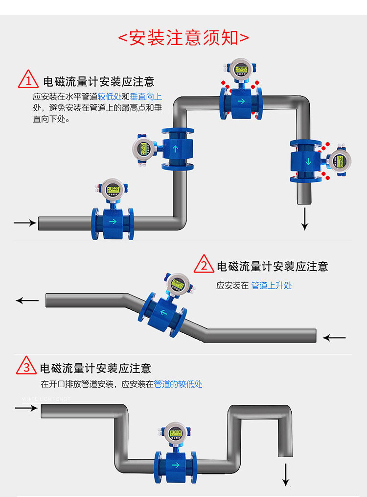 5、流量計(jì)應(yīng)安裝在水泵后端,不能在抽吸側(cè)安裝;閥門(mén)應(yīng)安裝在流量計(jì)下游側(cè)。